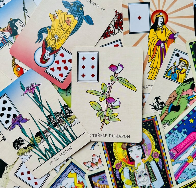 Je me souviens de ma grand-mère tirant les cartes, et à chaque début d’année, elle achetait le Femme Actuelle Hors-série spécial Astro, qui en plus des prévisions astrologiques signe par signe, contenait toujours un jeu de cartes divinatoires. Après l’avoir lu et feuilleté, elle me le donnait et je passais des heures à m’amuser avec les cartes, à essayer de découvrir mon avenir...
